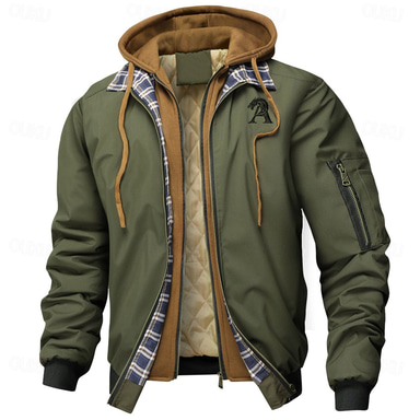 Men's Dragon Letter Printed Winter Coat Padded Hooded Jacket Thermal Warm Sporty Casual Outdoor Dailywear Zip Up Adjustable Drawstring Hood Plaid Lined Outerwear Fall Winter Long Sleeve Black Navy