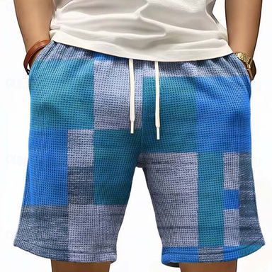 Men's Geometric Stripes Rhombus Waffle Shorts Sweat Shorts Casual Shorts Mid Waist Fashion Casual Vacation Jogging Workout Elastic Drawstring Waist Shorts with Pockets Designer Clothing Apparel