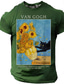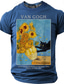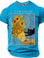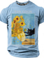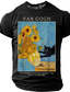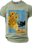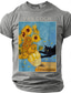 Men's Van Gogh Sunflowers Funny Black Cat Art Parody Graphic T-Shirt Impressionist Style Cat Lover Gift Purloined Edition Short Sleeve Casual Tee Designer Clothing Apparel S M L XL XXL XXXL