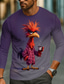 Men's Animal Funny T Shirt Long Sleeve T shirt 3D Print Crew Neck Shirt Fashion Basic Street Casual Daily Deep Purple Light Purple Green Summer Spring Clothing Apparel S M L XL XXL XXXL