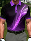 Men's Geometic Line Polo Sports Polo Shirts Short Sleeve Polo Shirts Collared Shirts Sportswear Casual Outdoor Athleisure Daily Wear Pocket 3D Print Buttons Summer Blue Black Purple
