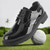 Men's Black and White Golf Shoes with Spiked Sole, Breathable Upper, and Lightweight Design for Comfort and Support on the Golf Course