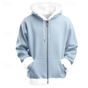 Men's Full Zip Hoodie Zip Up Hoodie Fuzzy Sherpa Fleece Jacket Fleece Hoodie Blue Purple Brown Khaki Hooded Graphic Zip Up Zipper Pocket Sports & Outdoor Daily Weekend Polyester Vintage Cool Casual