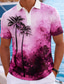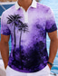 Men's Palm Tree Hawaiian Polo Shirts Short Sleeve Polo Shirts Collared Shirts Casual Athleisure Vacation Wear 3D Print Buttons Breathable Mesh Spring & Summer Blue Pink Purple