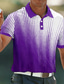 Men's Golf Gradient Stripes Waffle Polo Shirts Golf Shirt Short Sleeve Polo Shirts Collared Shirts Sportswear Casual Outdoor Athleisure Daily Wear 3D Print Buttons Summer Blue Purple Green