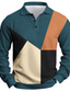 Men's Color Block Polo Long Sleeve Polo Shirts Lapel Business Casual Athleisure Daily Wear 3D Print Buttons Spring Fall Winter Blue Brown Green