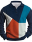 Men's Geometric Zip Polo Shirts Golf Shirt Long Sleeve Polo Shirts Collared Shirts Casual Vacation Wear Formal Wear Festival Wear 3D Print Quarter Zip Polo Spring & Summer Black Wine Navy Blue