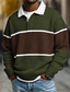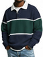 Men's Polo Shirts Golf Polos Shirts Street Business Classic Long Sleeve Fashion Basic Color Block Stripes Buttons Fall Winter Regular Fit Navy Blue Green Polo Shirts