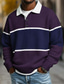 Men's Horizontal Stripes Waffle Polo Shirts Rugby Polo Long Sleeve Polo Shirts Lapel Sportswear Casual School Athleisure Daily Wear 3D Print Spring Fall Winter Blue Purple Brown