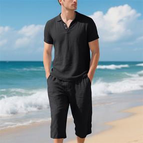 Men's Polo Shirts Golf Shirt Outdoor Daily Wear Lapel Short Sleeve Fashion Hawaiian Plain 2 Piece Summer Regular Fit Black White Navy Blue Khaki Army Green Light Sky Blue Polo Shirts