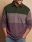 Men's Color Block Geometic Waffle Polo Shirts Long Sleeve Polo Shirts Collared Shirts Casual Business Wear to work Daily Wear Buttons Spring Fall Winter Blue Brown Green