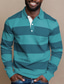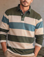 Men's Horizontal Stripes Rugby Polo Long Sleeve Polo Shirts Collared Shirts Sportswear Casual Outdoor School Athleisure 3D Print Spring Fall Blue Lake blue Green
