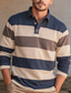 Men's Horizontal Stripes Rugby Polo Long Sleeve Polo Shirts Collared Shirts Sportswear Casual Outdoor School Athleisure 3D Print Spring Fall Winter Blue Sky Blue Brown