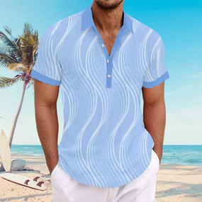 Men's Lines / Waves Geometric Pattern Button Up Shirt Henley Shirt Short Sleeve Hawaiian Resort Outdoor Business / Ceremony / Wedding Casual Summer Spring Fall Turndown Light Blue White Light Green