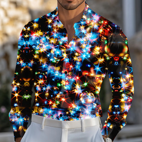 Christmas Men's Sparkling Glitter Christmas Light Shirt Satin Shirt Dress Shirt Long Sleeve Fashion Casual Outdoor Party Holiday Spring Fall Turndown 3D Print Button Up Shirts Red Blue Purple Orange