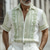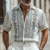 Men's Shirt Linen Shirt Summer Shirt Beach Shirt Button Up Shirt Tribal Casual Holiday Black White Sky Blue Green Short Sleeve Turndown Summer Clothing Apparel Front Pocket