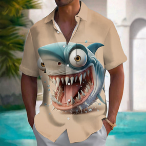 Men's Animal Shark Funny Summer Hawaiian Shirt Button Up Shirt Aloha Shirt Short Sleeve Hawaiian Vacation Summer Spring Turndown 3D Print Collared Shirts Front One Pocket Blue Khaki