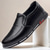 Black Leather Moccasin Slippers for Men - Elegant Slip-On with Metal Buckle for Business Casual