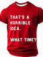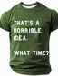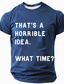 Men's Sarcastic Graphic T-Shirt: "THAT'S A HORRIBLE IDEA. WHAT TIME?" Funny Quote Tee for Lifestyle & Humor