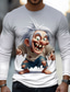 Men's 3D Old Man T Shirt Long Sleeve T shirt 3D Print Crew Neck Shirt Fashion Basic Street Casual Daily Light Brown Khaki Dark Gray Summer Spring Clothing Apparel S M L XL XXL XXXL
