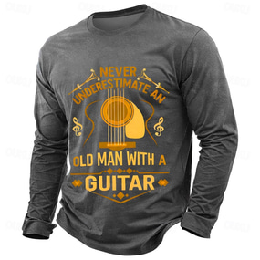 Never Underestimate An Old Man With A Guitar Funny Acoustic Guitarist Long Sleeve T Shirt Mens Musician Graphic Tee Charcoal Clothing Apparel S M L XL XXL XXXL