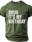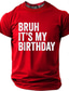 Men's Bruh It's My Birthday Text Minimalist Red Distressed Graphic Humorous Sarcastic Funny Gag T-shirt Tee Regular Fit Birthday Party Celebration Gift Clothing Apparel S M L XL XXL XXXL
