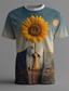 Men's Sunflower Head Figure Business Suit Tie Full Moon Starry Sky Surrealist Abstract Art Aesthetic Creative Vintage T-shirt Tee Regular Casual Gift Clothing Apparel S M L XL XXL XXXL