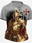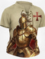Men's Crusaders Golden Knight Armor Red Templar Cross Medieval Fantasy Gothic Lace Up T Shirt All Over Print Henley V Neck Short Sleeve Casual Streetwear Designer Clothing Apparel