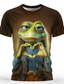 Men's Animal Frog Funny T Shirt Short Sleeve T shirt 3D Print Crew Neck Shirt Exaggerated Designer Party Holiday Blue Dark Brown Pink Summer Spring Clothing Apparel S M L XL XXL XXXL