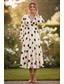 A-Line Tea Length Wedding Guest Dress Formal Dresses Evening Gown Prom Dresses Elegant Long Sleeve V Neck Prom Formal Pinstripe with Floral Print