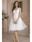 A-Line Knee Length Prom Dresses Flirty Empire Plus Size Sleeveless V Neck Homecoming Graduation Pink Dress Tulle with Pleats