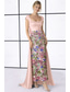 A-Line Floor Length Prom Dresses Corsets Princess High Split Sleeveless Sweetheart Prom Garden Party Pink Dress Organza with Floral Print Pleats Ruched