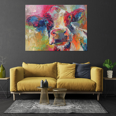 Handmade Oil Painting Canvas Wall Art Decoration Modern Animal Colorful Cattle for Home Decor Rolled Frameless Unstretched Painting