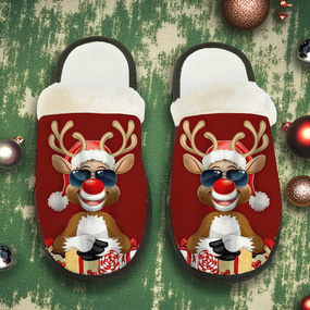 Men's Christmas Reindeer Slippers – Funny Animated Design, Cozy Fur Lining, Ideal for Holiday Gifting and Indoor Comfort