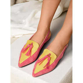Women's Colorblock Suede Pointed Toe Slingback Flats - Pink and Purple Tassel Loafers for Adults, Daily Date & Trendy Casual Outings