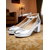 Women's Ivory Lace Ankle-Strap Block Heel Pumps, Elegant Bridal Shoes for City Wedding Bride