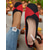Women's Elegant Green and Red Strappy Dress Sandals - Chic Square Toe Block Heels with Triple Ankle Straps for Cruise Vacations, Yacht Parties & Summer Resort Wear