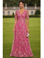 A-Line Ankle Length Cocktail Dresses Elegant Vintage Floral Half Sleeve V Neck Wedding Formal Pink Dress Satin Lace with Embroidery Pocket