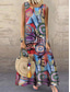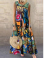Women's Normal Maxi Dress Boho Dress Cotton Linen Dress Elegant Vintage Beach Regular Fit Graphic Sleeveless Crew Neck Red Green Summer