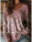 Women's Blouse Pullover Fuzzy Pink V-Neck Textured Long Sleeve Slim Fit Fashionable Spring Autumn Casual