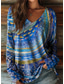 Women's Boho T Shirt Floral Graphic Plants Vintage Stylish Casual Long Sleeve V Neck Regular Tops Daily Weekend Print Pink Blue Gray Light Blue Summer Spring Fall
