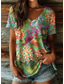 Women's Boho T Shirt Floral Graphic Vintage Stylish Classic Short Sleeve V Neck Long Tops Daily Vacation Wear Print Blue Purple Fuchsia Green Summer Spring