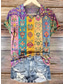 Women's T Shirt Print Floral Graphic Geometric Vintage Stylish Classic Short Sleeve V Neck Regular Tops Daily Weekend Ash Purple Orange Summer Spring