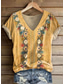 Women's T Shirt Print Floral Graphic Plants Vintage Stylish Casual Short Sleeve V Neck Regular Tops Casual Daily Weekend Blue Yellow Red Brown Summer Spring