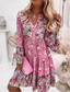 Women's Mini Dress Petite Dress Casual Dress Boho Dress Bohemia Vintage Casual Vacation Daily Regular Fit Floral 3/4 Length Sleeve V Neck Fuchsia Orange Green Spring Fall