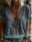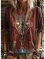 Women's T Shirt Embroidered Print Graphic Tribal Stylish Classic Casual Short Sleeve V Neck Long Tops Casual Daily Red Purple Green Beige Summer Spring