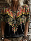 Women's T Shirt Print Floral Graphic Plants Vintage Stylish Casual Short Sleeve V Neck Long Tops Casual Daily Weekend Blue Black Red Summer Spring