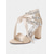 Beige Satin Crystal Embellished Open-Toe Block Heel Sandals - Women's Shoes for Wedding and Cocktail