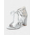 Women's Silver Peep-Toe Platform Heels with Subtle Pattern - Bold High Stiletto Pumps for Cocktail Parties and Evening Events