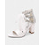 Women's White Bridal Sandals with Lace and Pearl Detailing, Block Heel Design for Beach Weddings and Summer Ceremonies